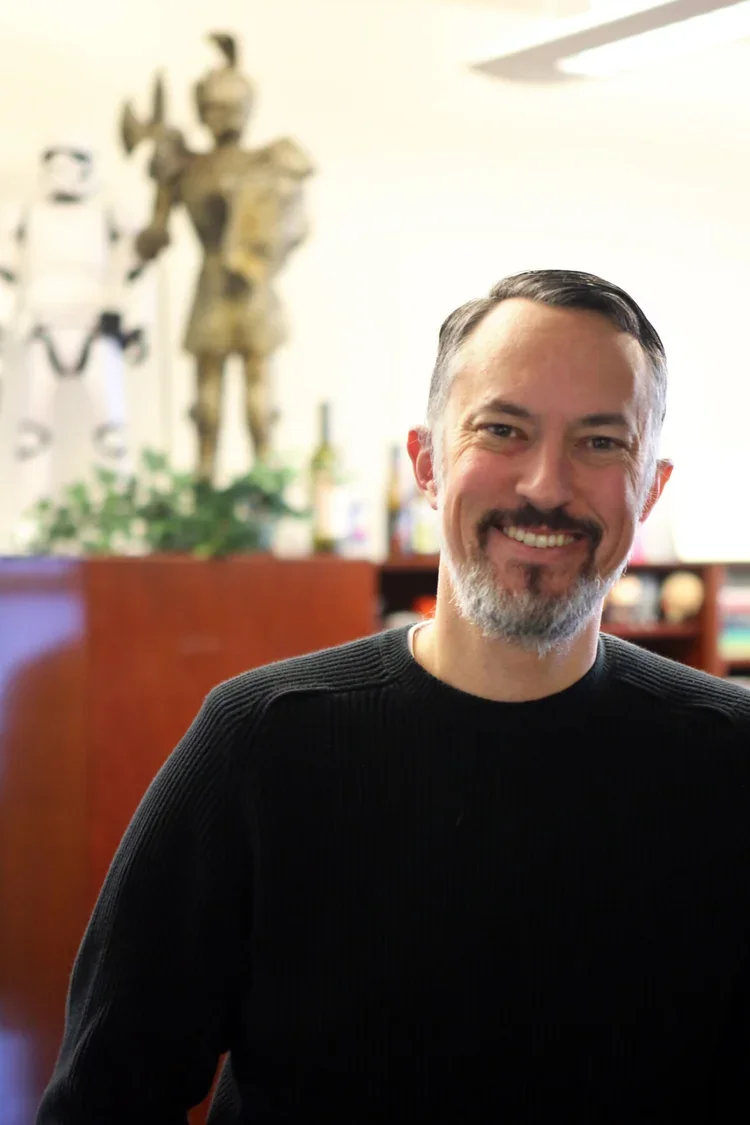 Justin Rawlins, Ph.D., is an associate professor of media studies and film studies, and the author of “Imagining the Method” (University of Texas Press, 2024). His research peels back the layers of film/media cultures to elucidate the ideological work that screen texts (e.g., films, TV programs, performers, stars, influencers) do as they radiate out of the culture industries and circulate through our everyday lives. Rawlins new research examines how our ideas of screen acting and actors are becoming part of discussions around, promotions of, and experiments with “AI” and performers both living and deceased.